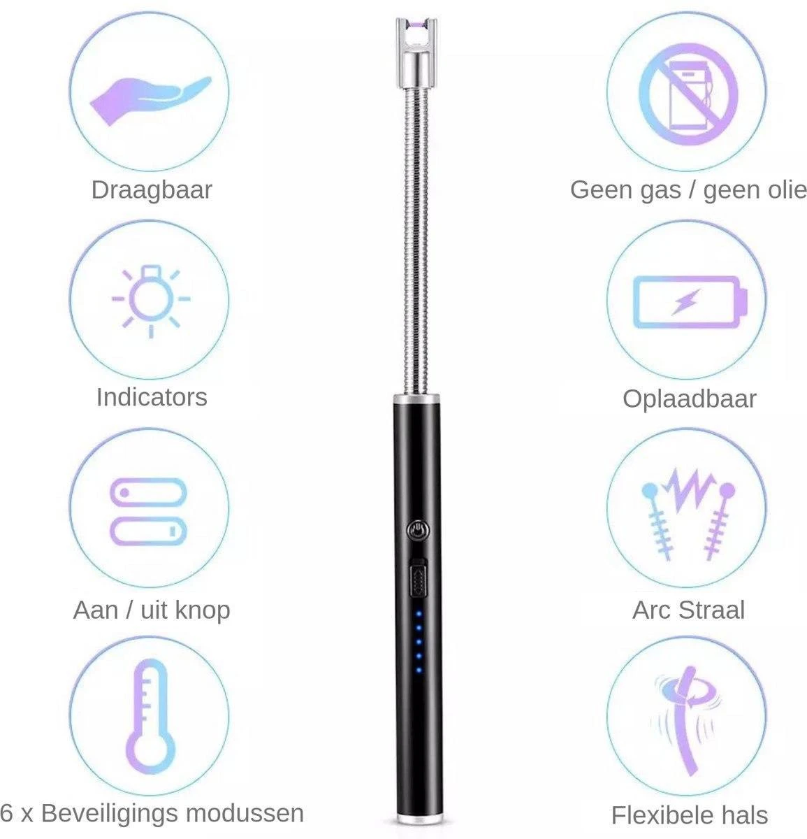 Merkloos BBQ Aansteker Oplaadbaar Met Usb Kabel – Elektrische Keuken Aansteker – Flexibele Aansteker – Zwart