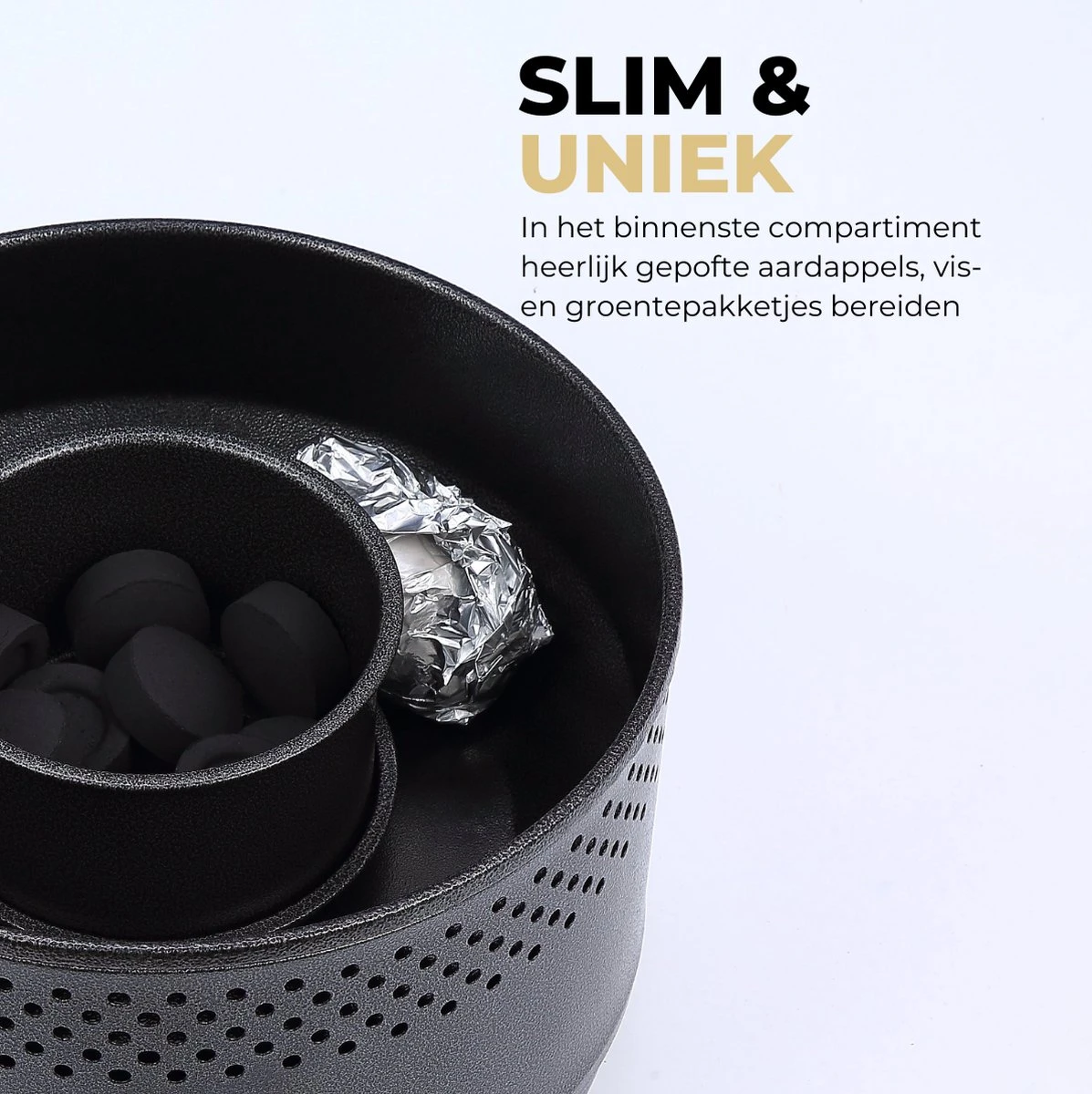 Ozocozy BBQ-ONE Houtskool Tafelbarbecue – Ø30 Cm- Zwart – Incl. Draagtas, Siliconen Bakkwast En RVS-Barbecuetang