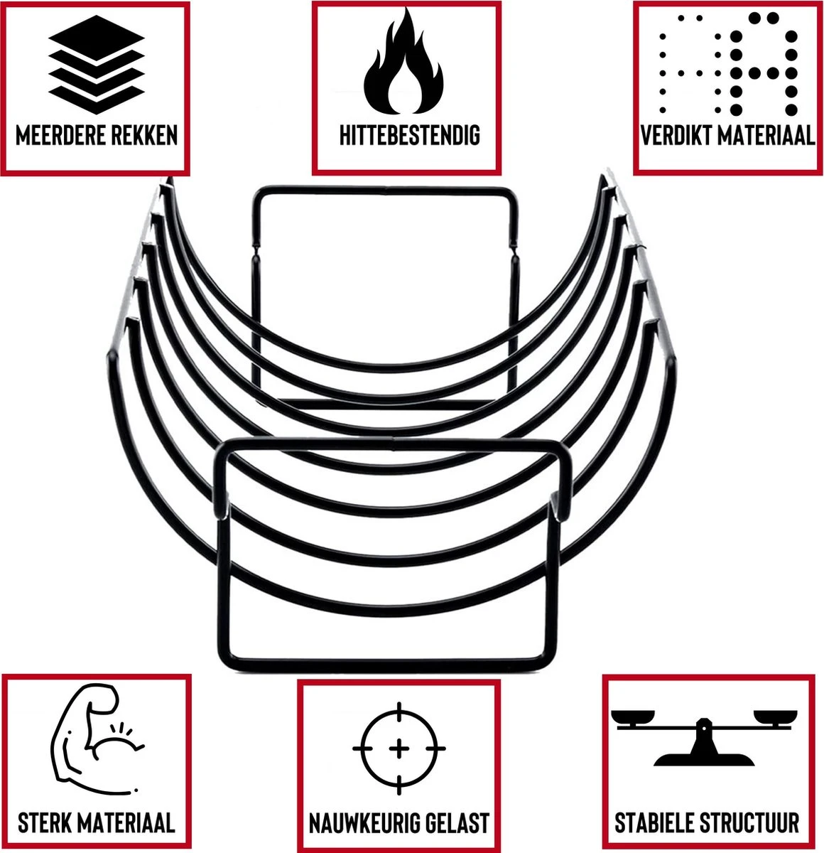 Rednas Sparerib Rek Bbq – Incl. Bakkwast – Bbq Rek – Bbq Accessoires – Rib Rack – Kiphouder – Bbq Gereedschap
